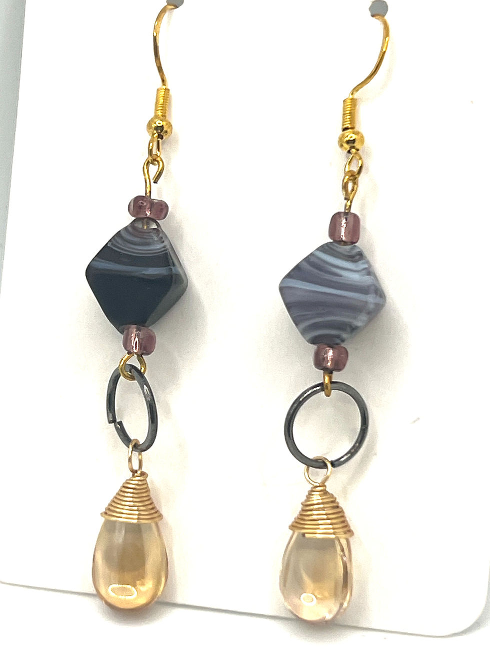 BRASS AND NATURAL AMETHYST GEMSTONE PAIR